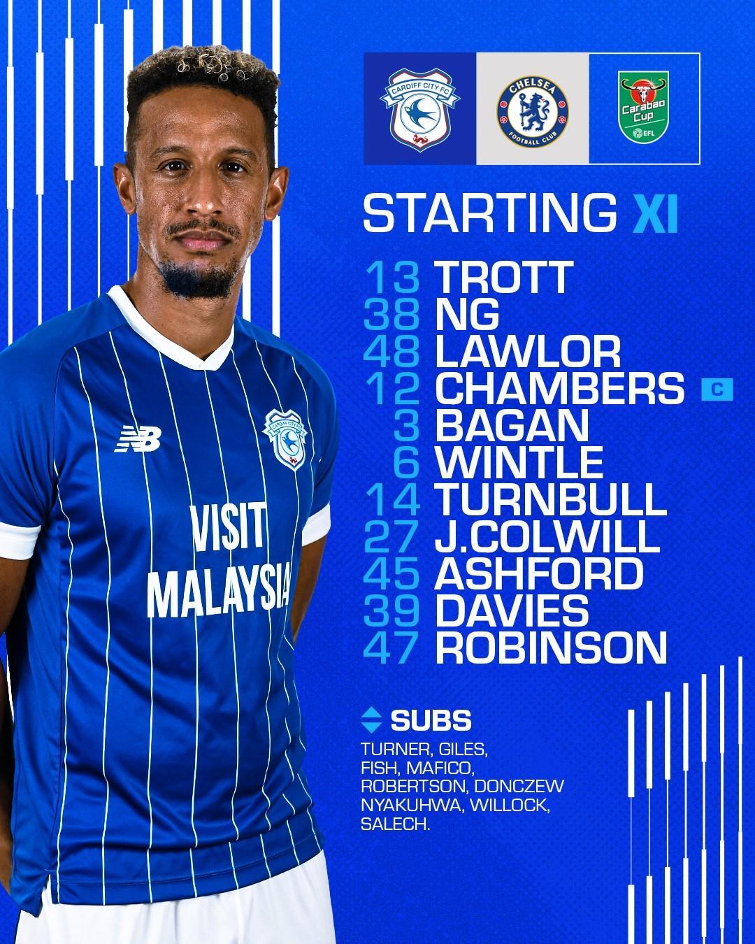 卡迪夫城首發(fā):13-特羅特、38-黃添喜、48-勞勒、12-錢伯斯、3-巴甘、6-溫特爾、14-特恩布爾、27-科爾威爾、39-戴維斯、45-阿什福德、47-卡勒姆-羅賓遜
