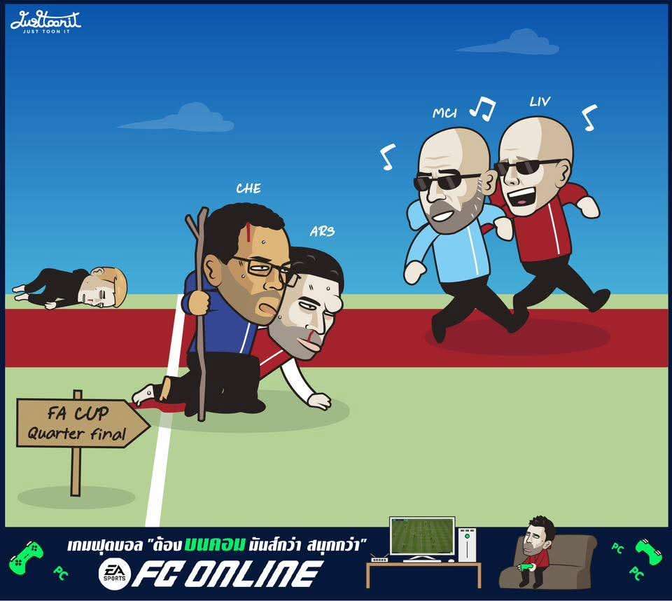 足總杯16強賽況be like FA Cup big teams Cartoon by Kaew Justtoonit, Artist from Thailand.