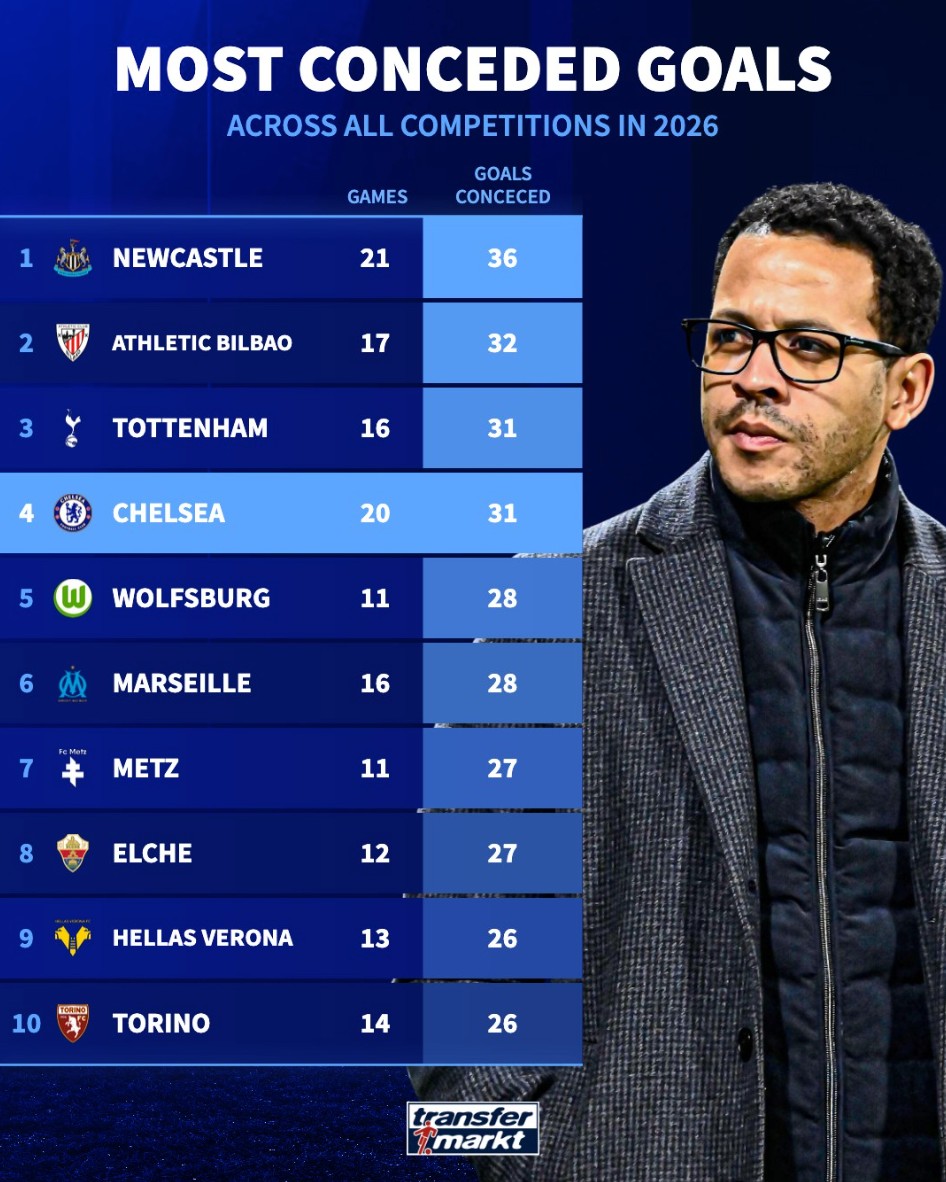 北京時間3月18日,切爾西在歐冠1/8決賽次回合的比賽中主場0-3完敗于巴黎圣日耳曼,兩回合總比分2-8被淘汰出局。與此同時,根據(jù)德轉(zhuǎn)的統(tǒng)計,藍(lán)軍2026年各項賽事的丟球數(shù)已經(jīng)達(dá)到了31球,同期歐洲五大聯(lián)賽球隊并列第三多,與近況糟糕的熱刺相同。