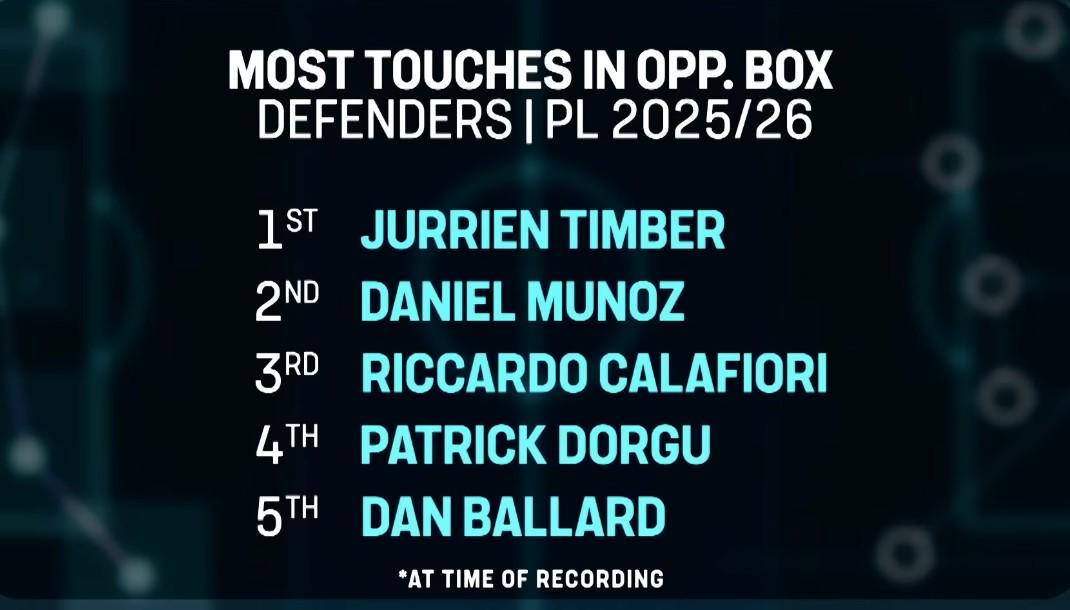 你在禁區(qū)內(nèi)的觸球次數(shù),在英超后衛(wèi)中也名列前茅。