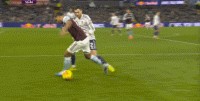 比賽第33分鐘,維拉在后場輕松起腳,沃特金斯和隊友在海文和烏加特的身上打出并保住優(yōu)勢,從而將球權(quán)轉(zhuǎn)給了邊路的羅杰斯,讓他有了和約羅一對一的機會: