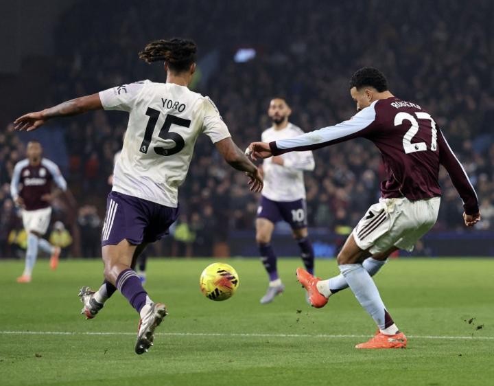 第45分鐘,維拉在中場完成搶斷,由來到中路的麥金頂住后衛(wèi)線,聯(lián)系到羅杰斯,然后在一對一中擊倒了曼聯(lián):