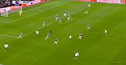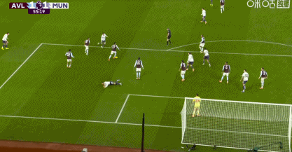 第57分鐘,又是他!摩根-羅杰斯兜射完成雙響,維拉2-1再度領先曼聯(lián)!