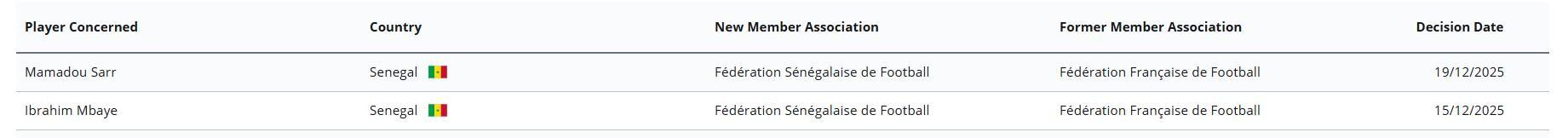 據(jù)國際足聯(lián)球員會(huì)籍轉(zhuǎn)換系統(tǒng)顯示,斯特拉斯堡中衛(wèi)馬馬杜-薩爾與巴黎邊鋒易卜拉欣-姆巴耶已經(jīng)將會(huì)籍由法國轉(zhuǎn)換成塞內(nèi)加爾。