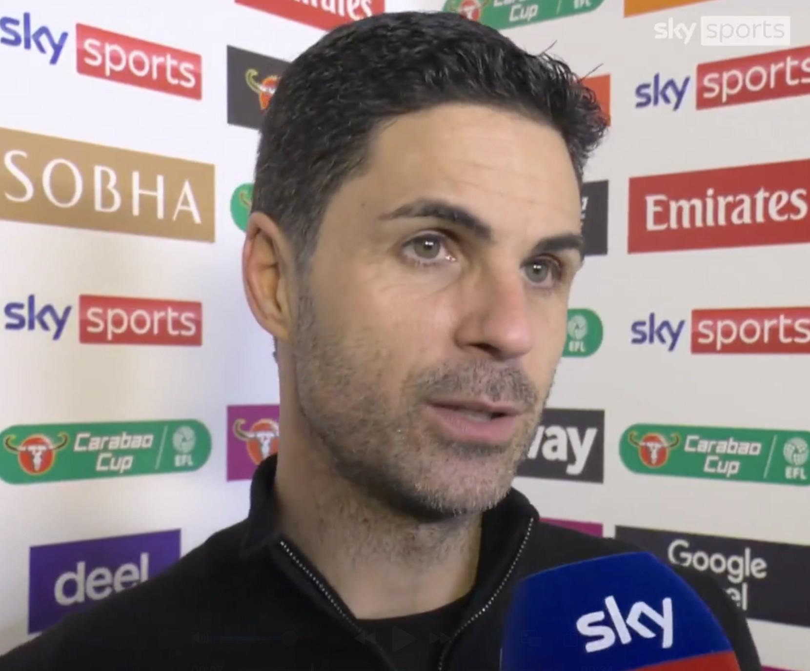 英聯(lián)杯1/4決賽,阿森納通過點(diǎn)球大戰(zhàn)淘汰水晶宮,賽后,槍手主帥阿爾特塔接受了天空體育的采訪。